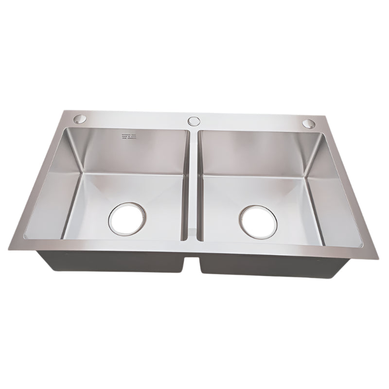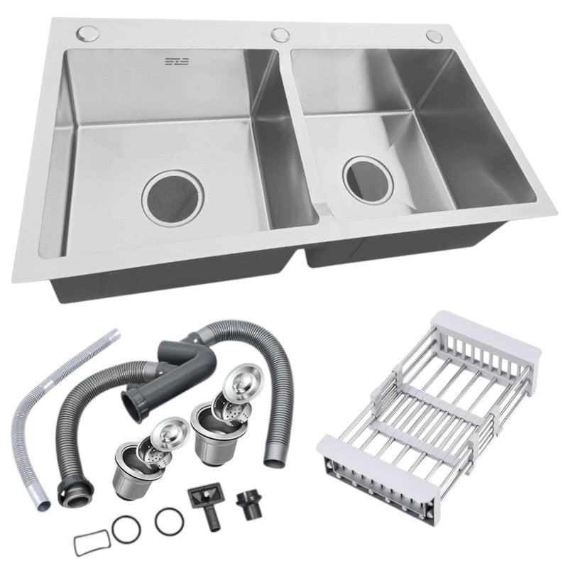 32x18 inches Handmade Kitchen Sink in Stainless Steel 8245 | Double Bowl | Drains + Rinse Basket
