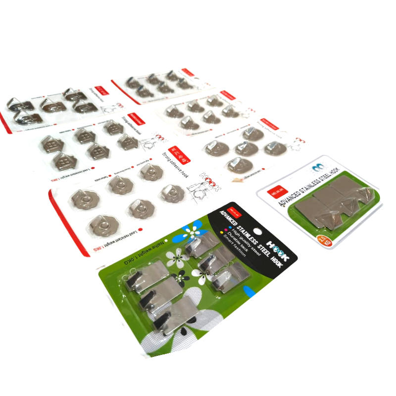 Adhesive Hooks Set in Stainless Steel | Sticky Wall Hooks