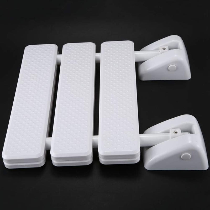 - Folding design-The wall-mounted shower stool can be easily folded against the wall when not in use, and takes up very little space. Moreover, you can easily extend the seat in the shower, dressing or wearing shoes.