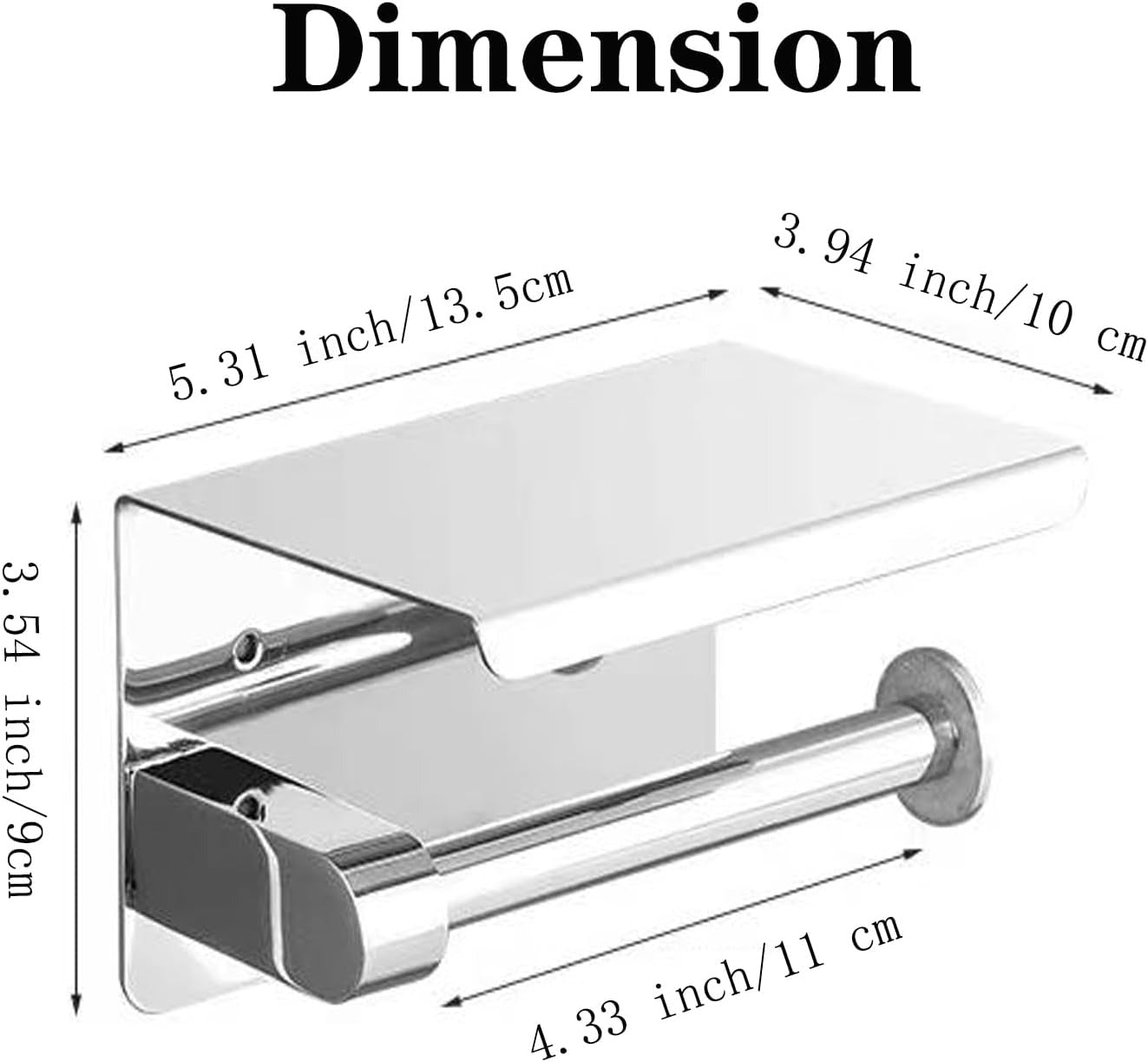 Premium Material: Toilet paper roll holder storage with phone shelf is made premium grade stainless steel. It won't rust,thickness 1.5 mm (1/16"), ensuring its durability and dependability